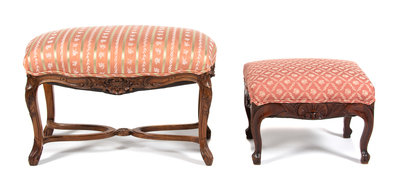 Louis XV Style Carved Walnut Bench and Foot Stool