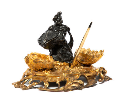 A Louis XV Style Parcel-Gilt and Patinated Bronze Encrier