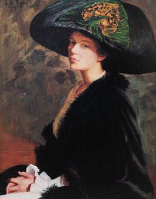 A Gicle Painting after Lilla Cabot Perry of a Lady in Green Hat