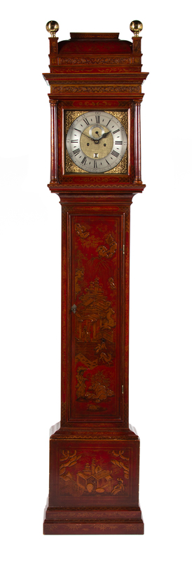 A George II Red Japanned Tall Case Clock