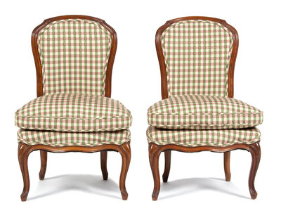 A Pair of French Provincial Style Carved Fruitwood Boudoir Chairs
