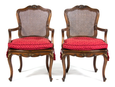 A Pair of Louis XV Provincial Style Carved Walnut Fauteuils