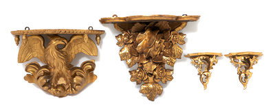 A Group of Four Continental Carved Giltwood Wall Brackets