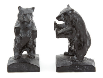 A Pair of Japanese Iron Bear-Form Bookends