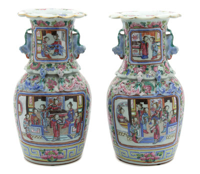 Pair of Chinese Export Famille Rose Porcelain Vases