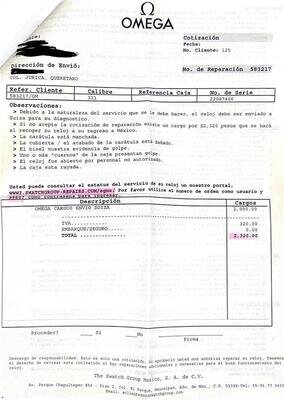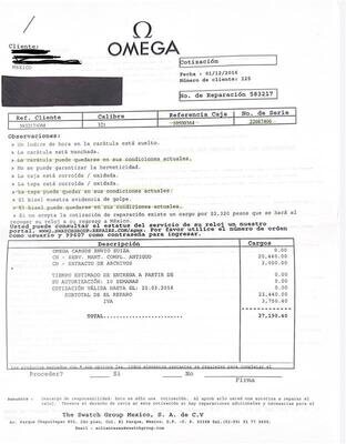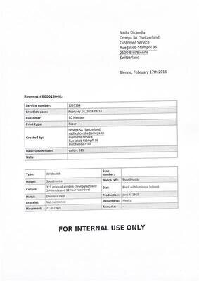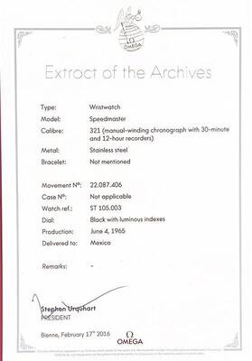 Sold with: Omega case, extract from the archives, service papers, and original hands