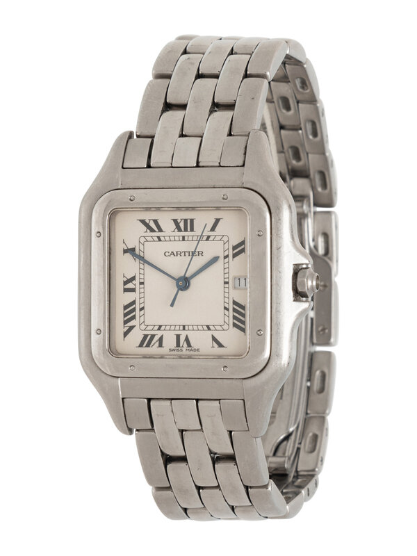 CARTIER, REF. 1300 STAINLESS STEEL 'PANTHÈRE' WATCH, BOX & PAPERS