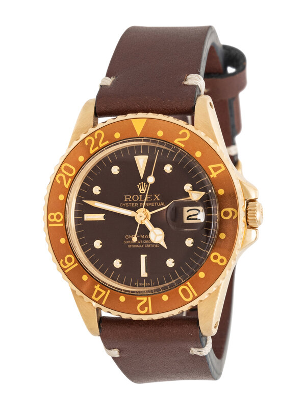 ROLEX, REF. 1675 18K YELLOW GOLD 'GMT-MASTER' 'NIPPLE DIAL' WATCH WITH ROLEX SERVICE CARD