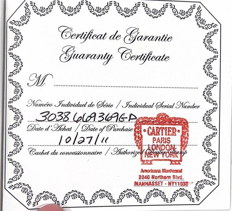 Stamps: Case back: Cartier SWISS MADE 669369GD 3098.