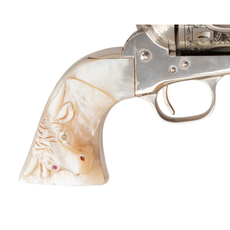 **1929 Production Colt Single Action Army with Raised Carved Mother of Pearl Steer's Head Grips in .45 Colt