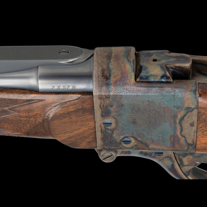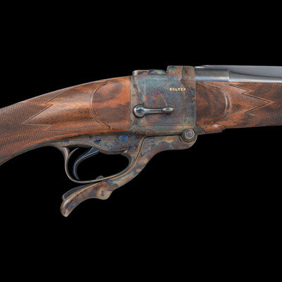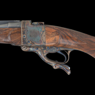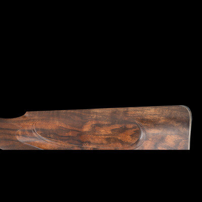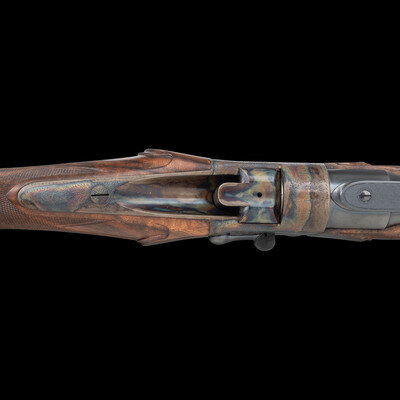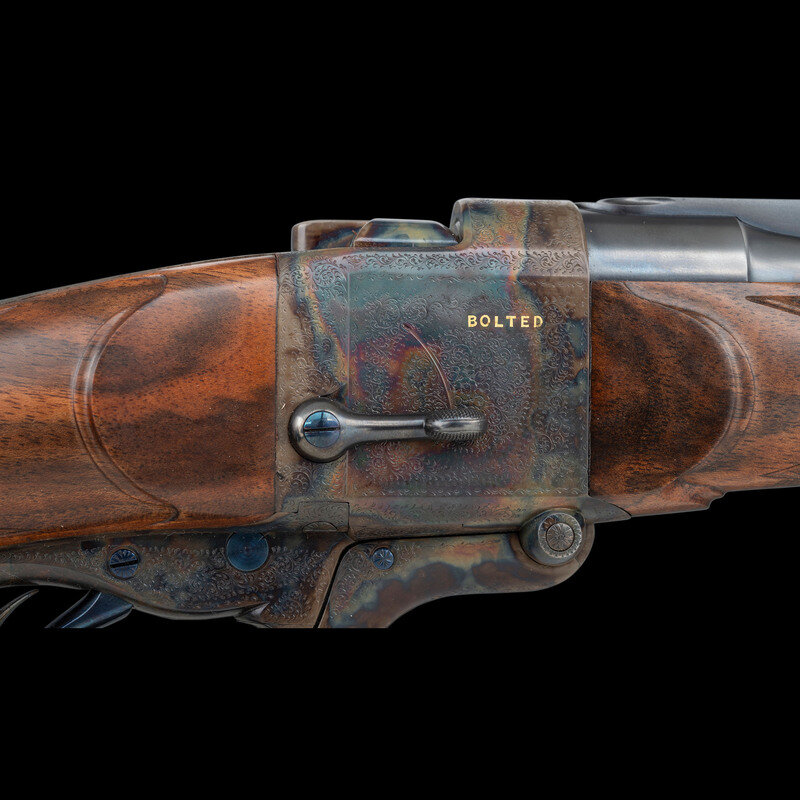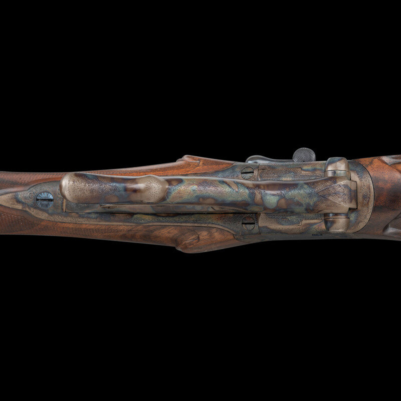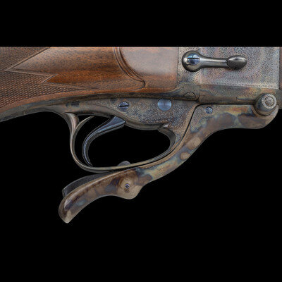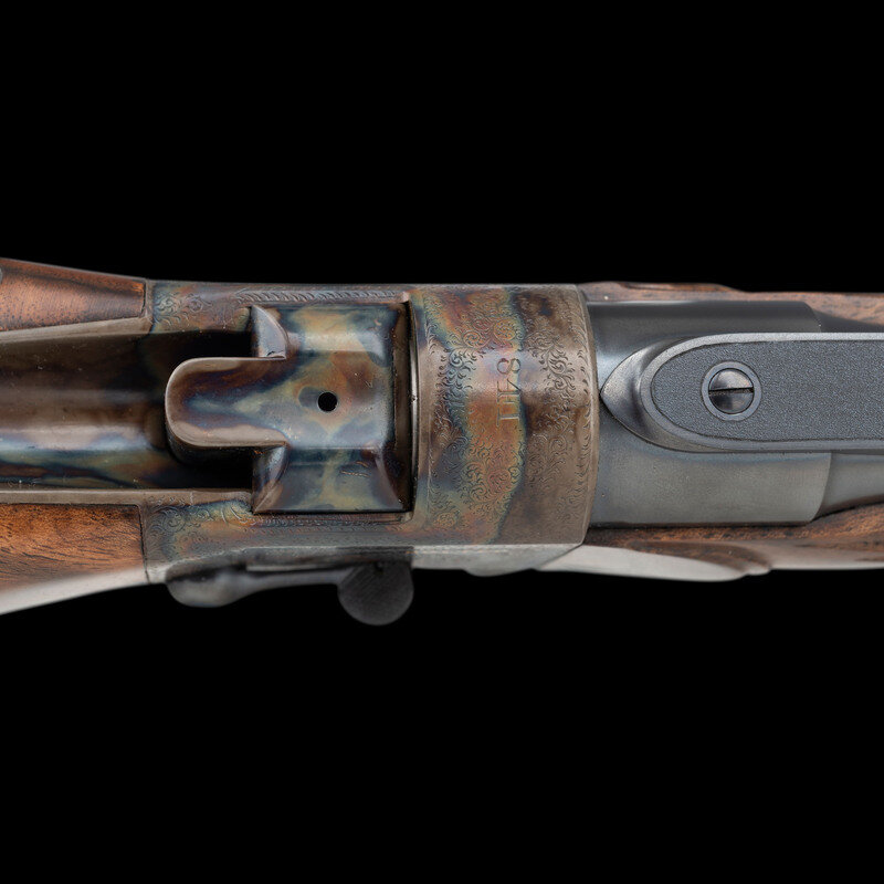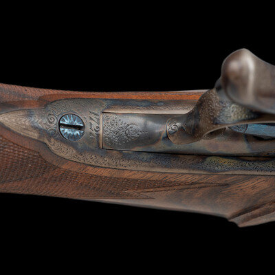 Stephen R. Heilmann began his gunmaking career in 1970, as a student at the Colorado School of Trades. In 1973, he opened his first business called simply The Gunworks, in Grass Valley, California. He quickly established his excellence in the field, so much so, that by 1980 it became necessary to establish a larger business to keep up with demand. In 1985, he joined the American Custom Gunmakers Guild, and continued to repair, rebuild, and produce custom guns until his passing on September 15, 2024. As a collaborative effort, this rifle demonstrated Heilmann's ability to fabricate and finish metal components that would blend seamlessly with the originally English manufactured frame and components. At the same time, the understated yet refined details of his metalwork reflect the tone of English gunmaking with regard to barrel finishing.