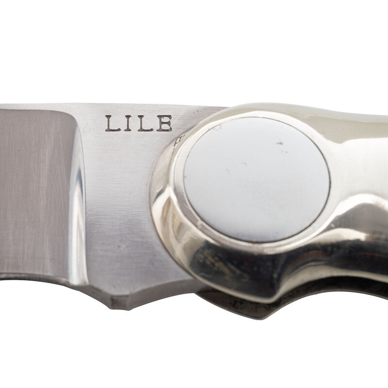 A full time knifemaker from 1971, James "Jimmy" Lile continued to produce handmade knives until his death in 1991. The company now bearing his name continues to offer a wide variety of knives following Lile's original patterns. The best known of these being the enormous clip-point serrated bowie knives that Lile produced for the movie "Rambo: First Blood", starring Sylvester Stallone. In the case of this lot, the signature to the left ricasso indicates that it was made during Lile's lifetime. An attractive example of a unique pattern of folding knife made by one of America's most well known and respected contemporary knifemakers.