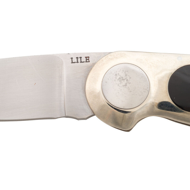 A full time knifemaker from 1971, James "Jimmy" Lile continued to produce handmade knives until his death in 1991. The company now bearing his name continues to offer a wide variety of knives following Lile's original patterns. The best known of these being the enormous clip-point serrated bowie knives that Lile produced for the movie "Rambo: First Blood", starring Sylvester Stallone. In the case of this lot, the signature to the left ricasso indicates that it was made during Lile's lifetime. An attractive example of a unique pattern of folding knife made by one of America's most well known and respected contemporary knifemakers.