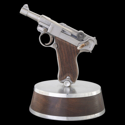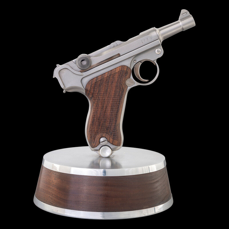*Bright Finished John Martz Custom Baby Luger 9mm with Matching Stand