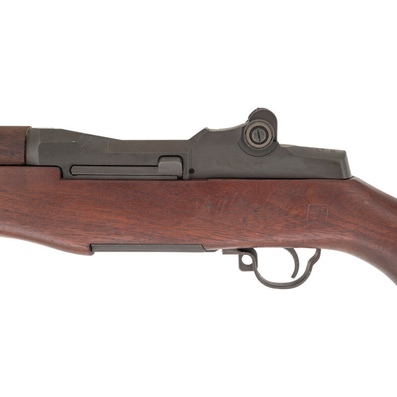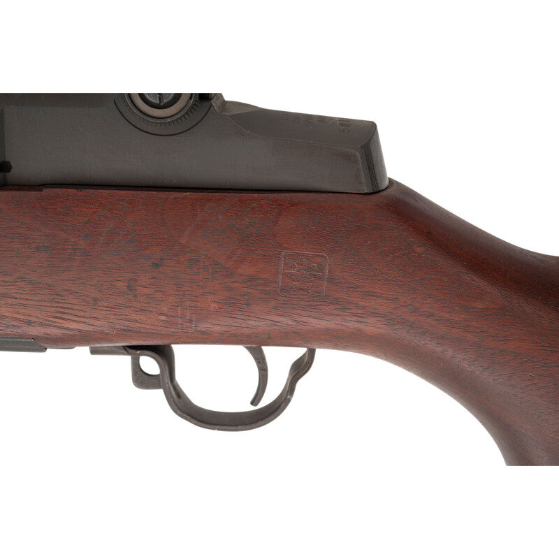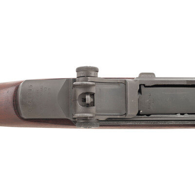 .30-06. 24" barrel length. SN: 5811970. Parkerized metal finish overall mounting a walnut semi pistol grip stock with full length upper handguard mounting T105 pattern rear aperture and front blade sights with protectors. Long stroke piston driven rotating bolt semi-automatic rifle fed by an internal magazine charged with stripper clips. Receiver is marked U.S. RIFLE/CAL. .30M1/SPRINGFIELD/ARMORY. Serial number corresponds to a late production M1 Garand circa 1955. Stock displays a circle P mark on the grip, and a {Defense Acceptance Stamp} to the left wrist. Trigger housing marked 6528290-SA and the hammer SA D5546008. Barrel marks include SA F6535448 followed by date mark 2 55 and A217B. There is a {Defense Acceptance Stamp} to the right barrel, along with three P stamps with a punch dot in the loop of the P, correct for National Match rifles. Right receiver is marked F6528291. Bolt is marked 6528287-SA/A14. Radius cut operating rod is further marked 6535382 SA, the appropriate mark for a late M1 Garand rifle. Left barrel is marked NM for National match, the only such mark that appears on this rifle. It mounts standard T105 sights with the original pattern apertures, correct for a National Match Type 2. Item comes with letter from the Civilian Marksmanship Program attesting that it as sold on November 3, 1955 and marked as a National Match rifle. {C&R}
