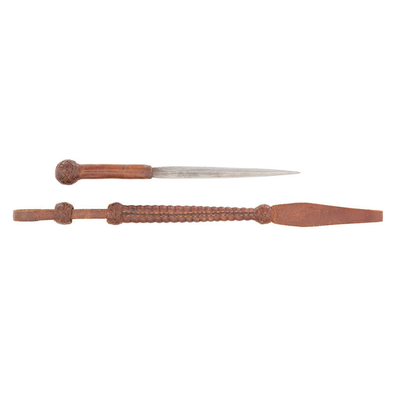 3) Riding Crop with Concealed Dagger. 6.75" tapered double edged dagger blade. 11.25" in overall length, riding crop 17" in overall length.