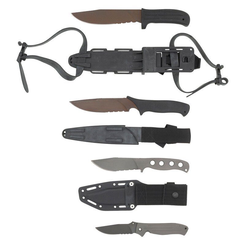 Lot of Four Mission Knives: 3 Fixed Blade Knives Including: MPK, MPT, and MPS and 1 MPF Folding Knife
