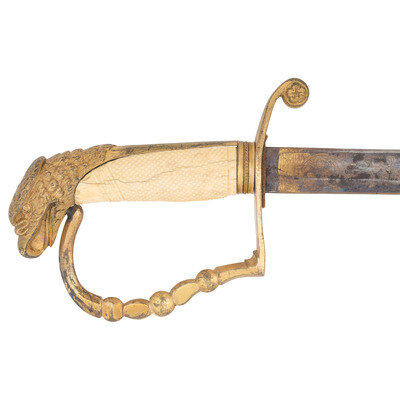 Mexican War Era Eagle Hilt US Militia Officers Sword with Blued & Gilt Blade