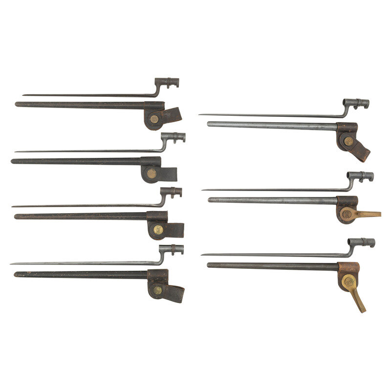 Six US Model 1873 Trapdoor Rifle Socket Bayonets with Scabbards and One Remington No. 1 Bayonet with Scabbard