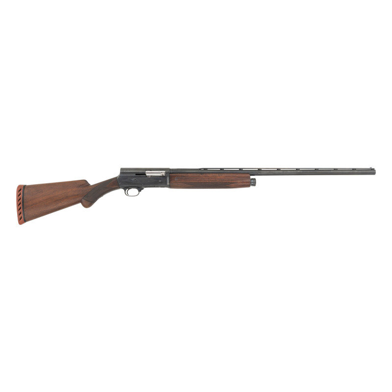 16 Gauge. 27.5" barrel length. SN: X33067. Blued metal refinish with polished bolt mounting walnut round knob pistol grip stock with bordered checkering to wrist and forend, and a rubber recoil pad to butt. Long recoil operated tube magazine fed semi-automatic shotgun featuring a full length vented barrel rib and front white bead sight. Item shows standard make and model marks with BROWNING marks to receiver and lightly engraved borders with floral embellishments. Left side of the rib is struck SIMMONS GUN SPECIALTIES INC. KANSAS CITY, MO, suggesting it was mounted after production. {C&R}