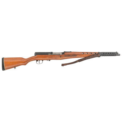 7.62x54mmR. 21.25" barrel length. SN: AB523. Blued metal finish with the bolt finished bright mounting a sanded and refinished Birchwood semi pistol grip stock that has been sporterized from its original military configuration. Short stroke piston driven gas-operated rifle fed by detachable double-stack magazines and charged with stripper clips. Receiver shows the {Arrow in Circle} manufacturer marking of Podolsk followed by 1941 date marking. Left receiver exhibits a boxed SA mark indicating Finnish capture and service. Serial numbers mixed, as is typical of Finnish captured examples. Most likely arsenal refinished. Scattered Soviet arsenal stamps to major components. Sporterized modifications include: barrel cut down from its original length of 24.6", omitting the muzzle brake and front sight tower, dovetail cut applied to the gas regulator to install a front blade sight, masking tape applied to shim the barrel, rear sling swivel replaced by an aftermarket model retained by a single screw, and the butt cut down to install a STOEGER rubber recoil pad with white spacer. Lacks cleaning rod and magazine. {MODERN}