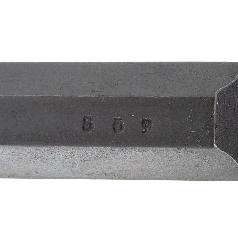 .36 caliber. 6.5" octagonal barrel. SN: 557. Blued finish, brass triggerguard, two-piece smooth walnut grips. Double action percussion revolver with six-chambered fluted cylinder, frame groove rear sight and dovetailed German silver cone front sight. Two-line Remington address and patent barrel markings nearly illegible due to the refinishing. Matching serial numbers under barrel, on lower left of grip frame under grips and inside both grips. No serial number is visible on the rear face of the cylinder. These far from successful Remington double action percussion revolvers were produced circa 1863-1873, with only between 3,000 and 5,000 believed to have been made. The majority of the production was apparently either altered to cartridge or actually produced as cartridge revolvers. Only a few hundred of the earliest percussion revolvers were produced with fluted cylinders, making them particularly scarce and desirable. {ANTIQUE}