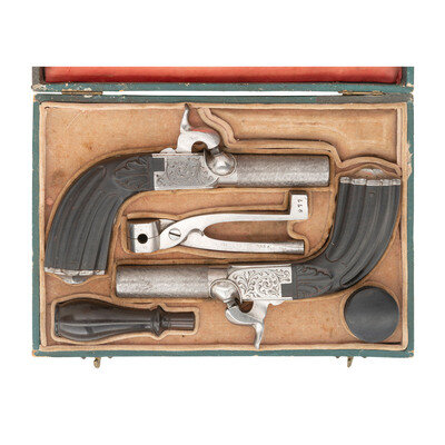 Cased Pair of Belgian Percussion Turn-Off Pocket Pistols