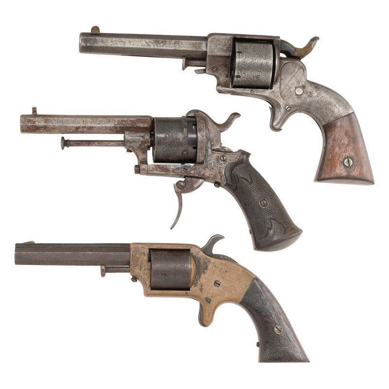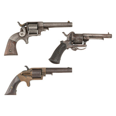 Three Antique Revolvers: 7mm Pocket Pinfire, Plant Pocket & Allen & Wheelock Side Hammer .32