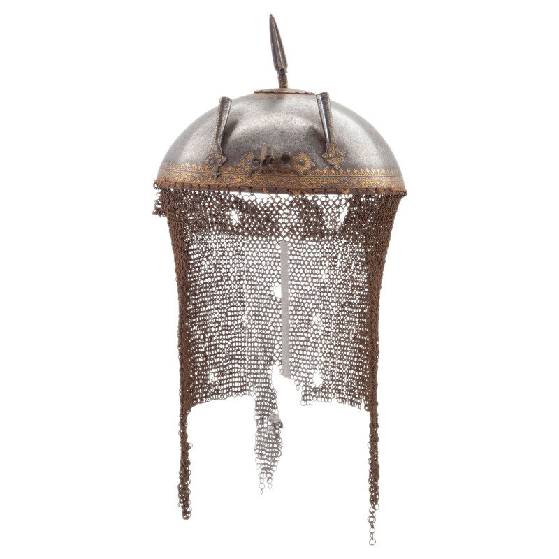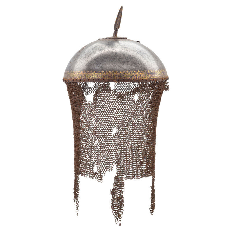 Indo Persian Kulah Khud Spiked Helmet with Chainmail Aventail
