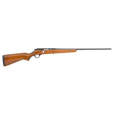 .410 Gauge. 24.25" barrel length. SN: NSN. 3" chamber length. Modified choke. Blued metal finish with polished bolt in varnished walnut semi pistol grip stock with black synthetic triggerguard and aftermarket Pachmayr rubber recoil pad to the buttplate. Bolt action single shot shotgun. Standard make and model markings. Front sight has been replaced with a screw, and the recoil pad fits poorly with gaps and overlap at the edges. {C&R}