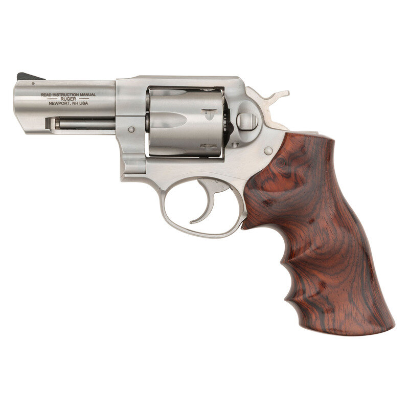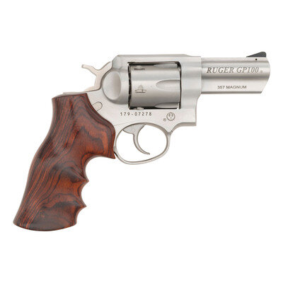 .357 Magnum. 3" ribbed barrel. SN: 178-07278. Stainless finish with polished wood grips. Double action six shot revolver with ribbed barrel and full length underlug. Standard make and model markings. {MODERN}