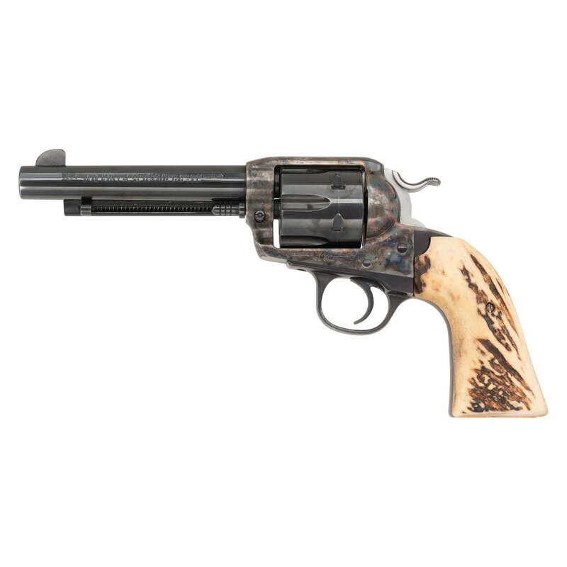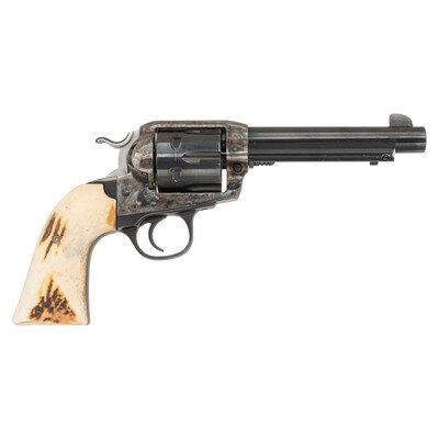 .45 Colt. 5.5" barrel. SN: 56-61969. Blued metal finish with case colored frame and polished hammer flanks mounting staghorn grips. Single action six shot loading gate revolver with fixed topstrap notch and front blade sights. Standard make and model markings. Features the transfer bar safety. {MODERN}
