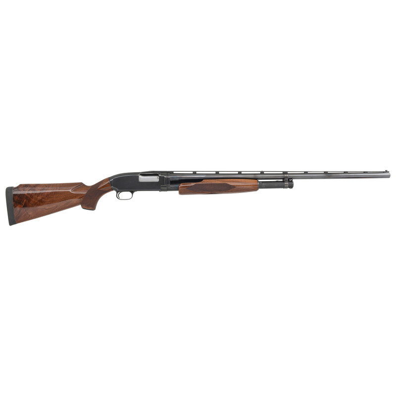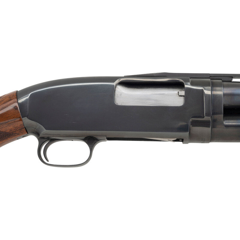 12 Gauge. 30" barrel length. SN: 1741724. 2.75" chamber length. Full choke. Blued metal refinish with polished bolt mounting upgraded polished walnut semi-pistol grip stock with checkering to wrist and forend, and a factory vented barrel rib. Slide action repeating shotgun fed by a tube magazine featuring twin bead sights on matted rib. Standard markings include offset monogram proofs to receiver and barrel, and WINCHESTER trade mark without address to left barrel. Mounts a black rubber KICK-EEZ recoil pad. {C&R}