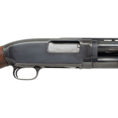 12 Gauge. 26" barrel length. SN: 1191560. 2.75" chamber. Choke could not be verified due to compensator, possibly cylinder. Slide action shotgun with blued finish and walnut semi-pistol grip stock and pump. Features jeweled bolt face and loading gate along with aftermarket rib and Cutts compensator. Stamped with standard Winchester model markings and rollmarks. Stock is fitted with Winchester rubber recoil pad. {C&R}