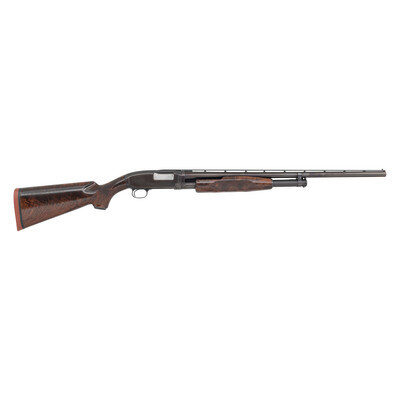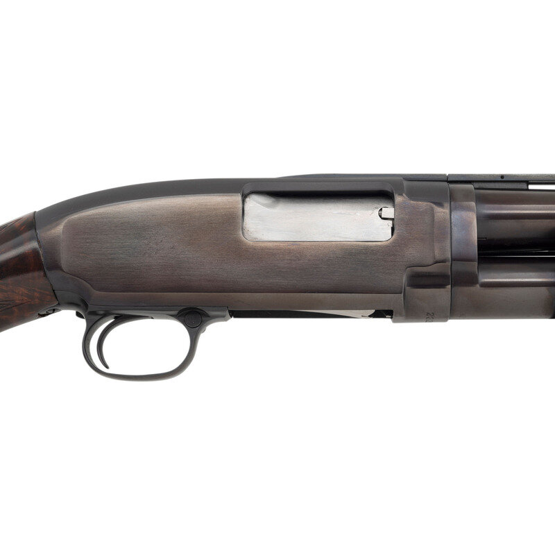 16 Gauge. 26" barrel length. SN: 232568. 2.75" chamber length. Modified choke. Slide action shotgun with blued metal finish and high grade walnut semi-pistol grip stock and pump. Features non-factory rib along with bordered checkering to pistol grip and pump. Stamped with standard Winchester model markings. Stock is fitted with Winchester rubber recoil pad. {C&R}