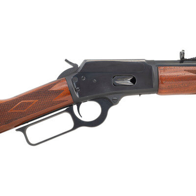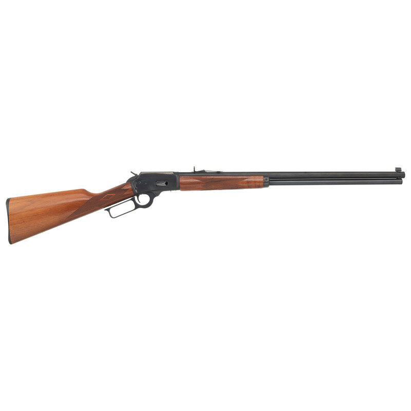 .45 Long Colt. 24" barrel length. SN: 04037788. Blued metal finish with walnut straight wrist stock featuring multipoint checkering to the wrist and forend, and an octagonal barrel. Lever action tube magazine fed repeating rifle mounting full buckhorn rear and front brass bead sights. Standard make and model markings. Mounts a crossbolt hammer-block safety mechanism. {MODERN}