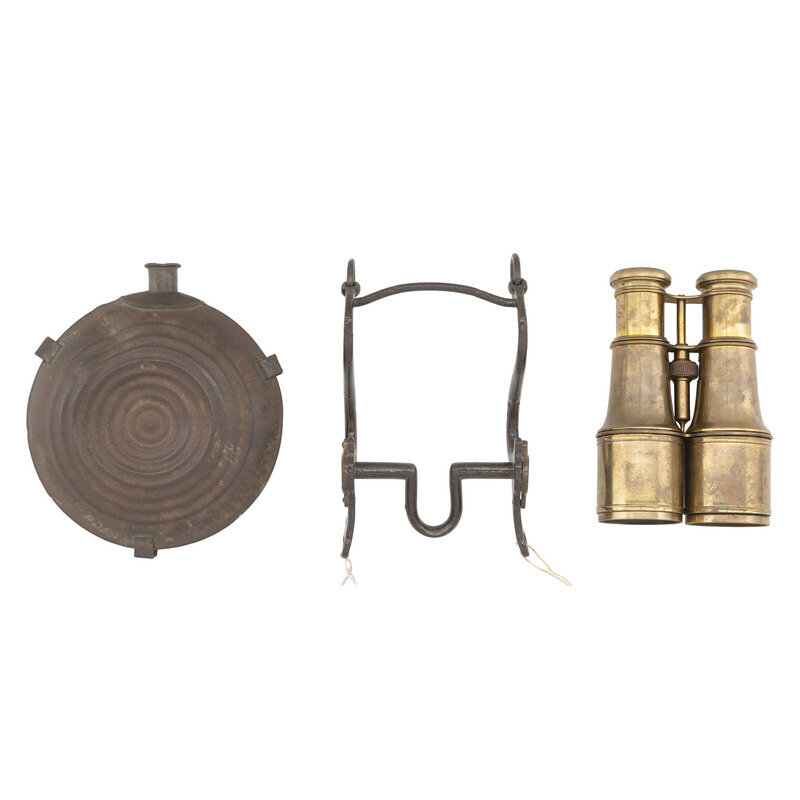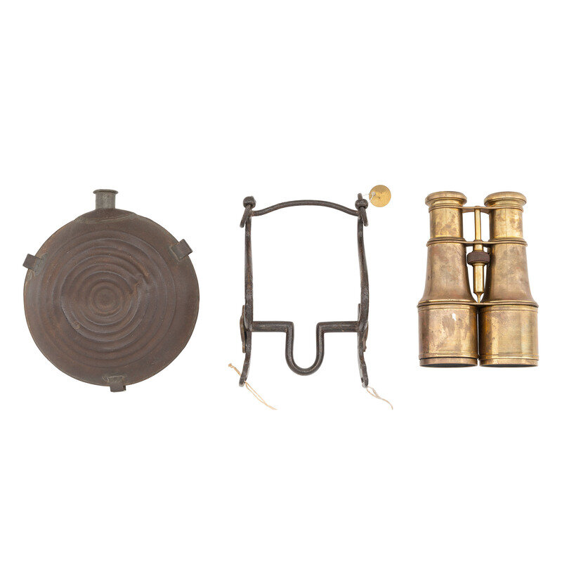 Lot of Civil War Era & Later Militaria including: Bullseye Canteen, Excavated US Bit & German Field Glasses
