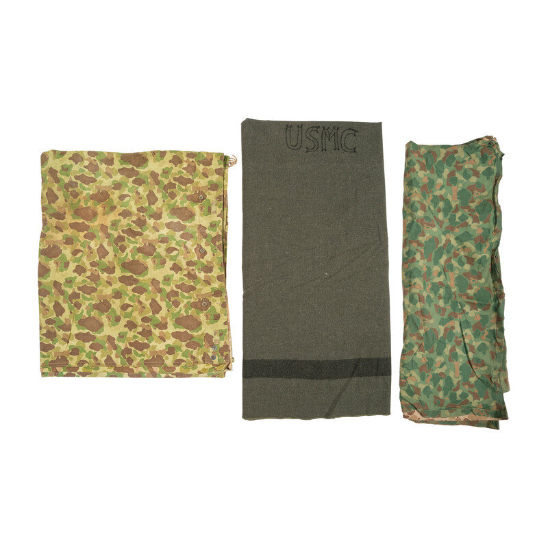 Lot of Two WWII Frogskin Camouflage Shelter Halves and USMC Blanket