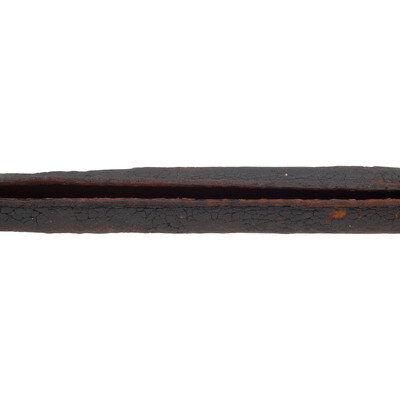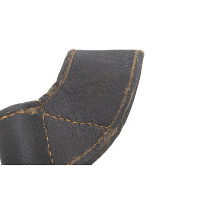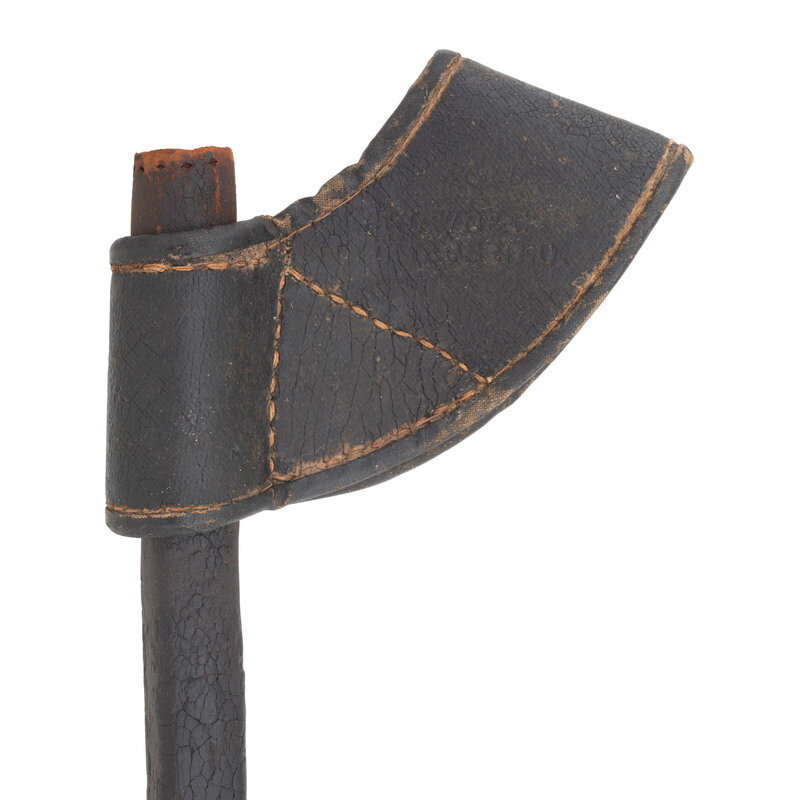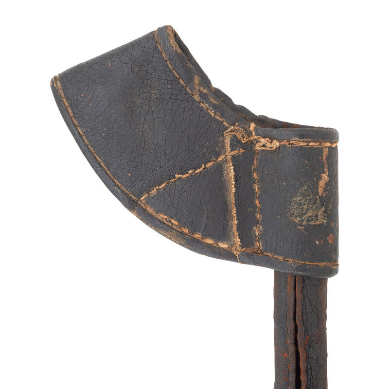 This may be the only surviving example of an N Crown & Company marked bayonet scabbard, and certainly the only example to come to public auction. A small number of N Crown & Co produced cap pouches and cartridge boxes survive, but they are exceedingly rare. This is an opportunity to acquire an extremely rare and important example of a deep south produced tarred canvas socket bayonet scabbard that may be the only surviving example.