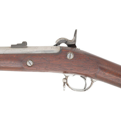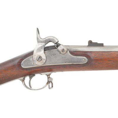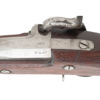 .58 caliber. 40" round barrel secured by three flat, spring-retained barrel bands. NSN. Bright finish, iron furniture, walnut stock. Single shot percussion muzzleloading rifle musket with M1861 pattern three leaf rear sight, Barleycorn combination front sight and socket bayonet lug, sling swivels and a swelled-shank tulip head ramrod. Lock marked with a {Spread-Winged Eagle}/U.S. forward of the hammer and in two horizontal lines U.S./SPRINGFIELD and dated 1862 at the tail. Breech of barrel dated 1862 as well. Upper left breech with typical V/P/{Eagle Head}. Counterpane of stock a single crisp, clear inspection cartouche, the script ESA of Springfield's Master Armorer Erskine S Allin. The most desirable representative US used military long arms from the American Civil War is a Springfield produced US Model 1861 Rifle Musket. 1861 and 1862 dated examples that are all correct and in good condition are quite scarce as these guns saw the brunt of the fighting for the majority of the war. Finding one of these guns in such fine condition as this example is even more difficult. This 1862 dated example is correct in every way and remains in fine, crisp condition, making it a wonderful addition to any serious collection of Civil War small arms.{ANTIQUE}