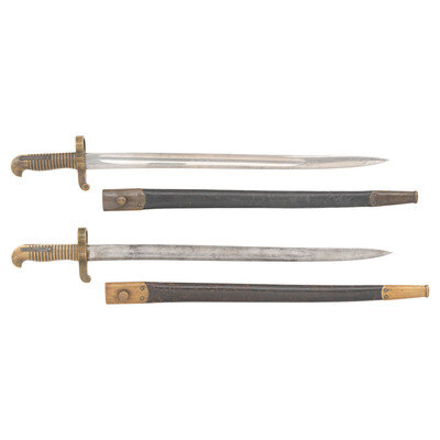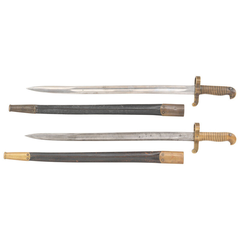 Two US Model 1863 Remington Zouave Rifle Saber Bayonets & Scabbards