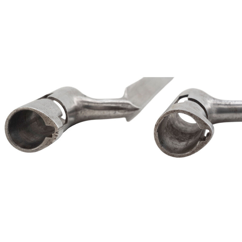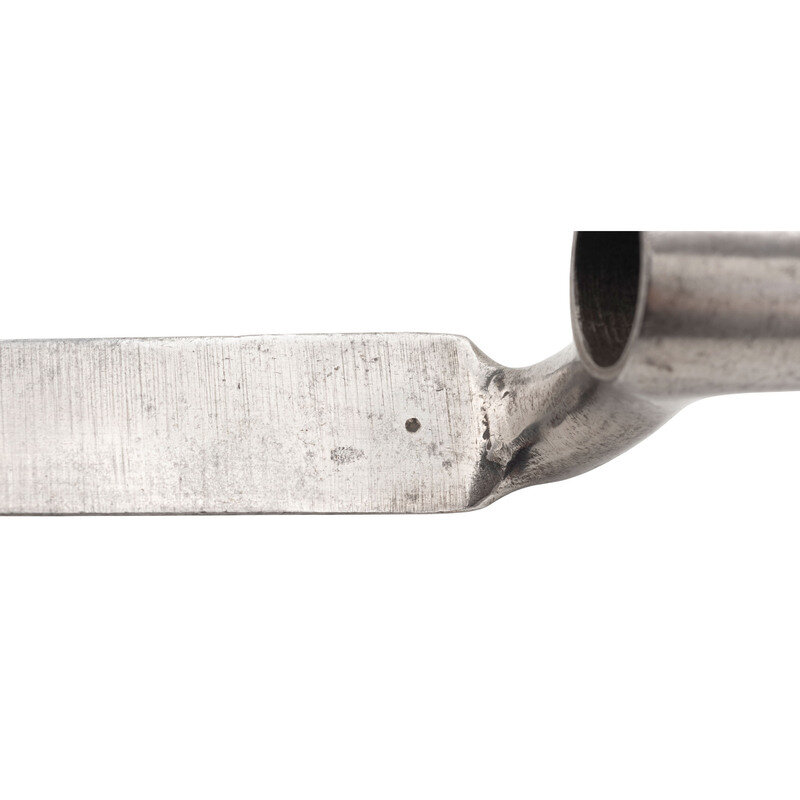 2) 15.75" bright blade with 9" fuller, 19" in overall length. 2.94" socket with T-mortise cut for a top stud and bridge with properly offset notched cut for the Hall Rifle's front sight blade. Conventional tip. Marked with a single punch dot at the ricasso.