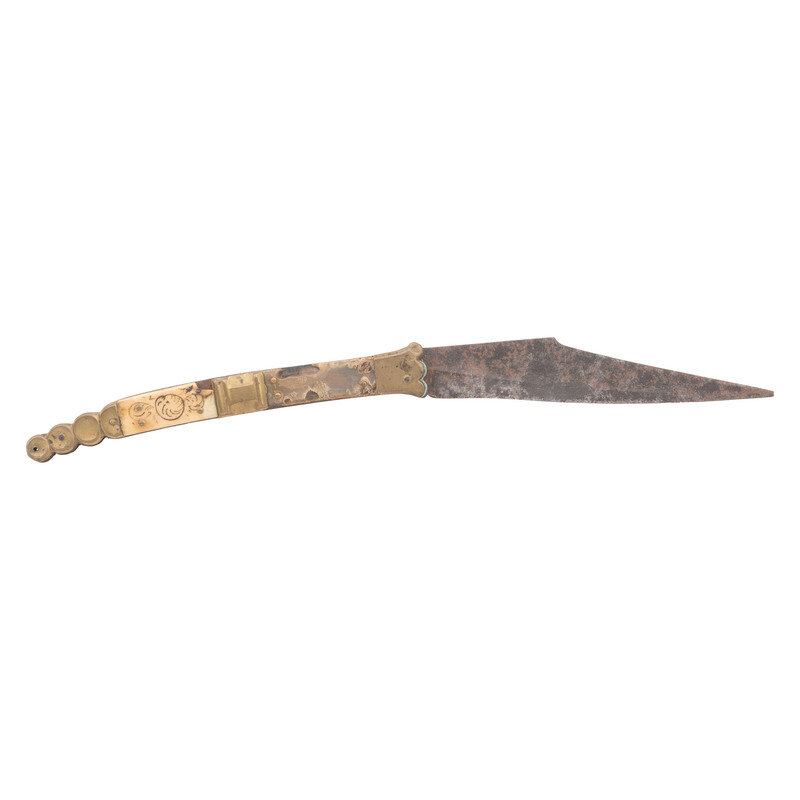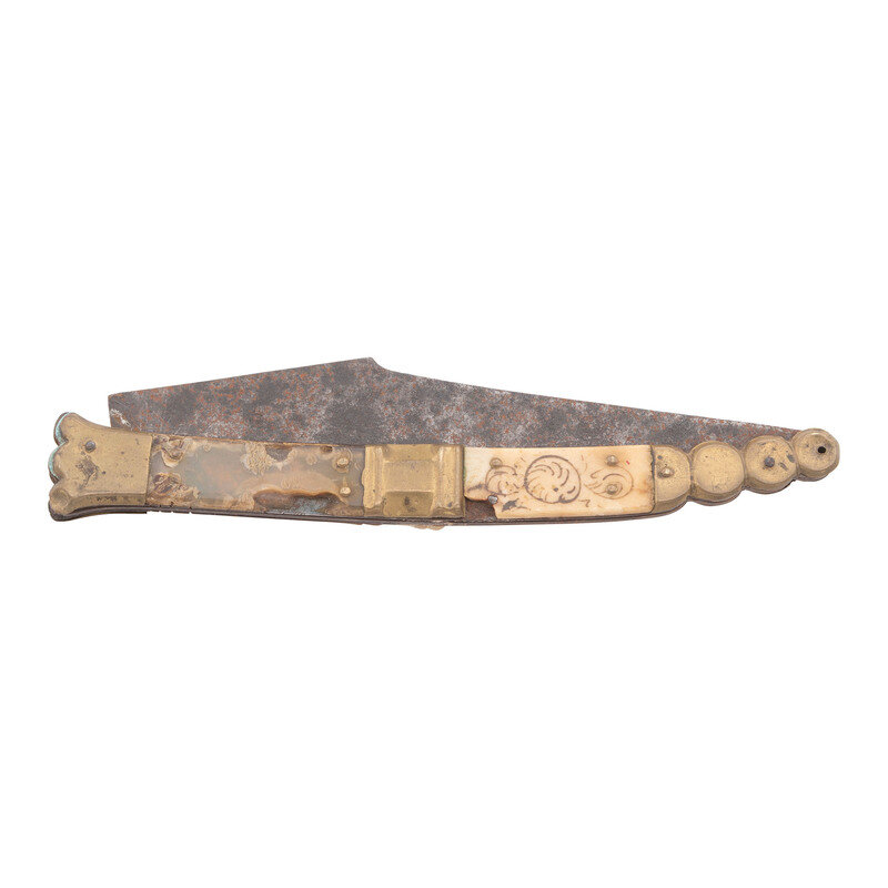 This knife was kept among the possessions of former presidents preserved at the historic James Monroe house, and comes with a label reading Spanish clasp knife c. 1730/commonly used in Spanish Main by pirates/once owned by Theodore Roosevelt. No further provenance available for this item.