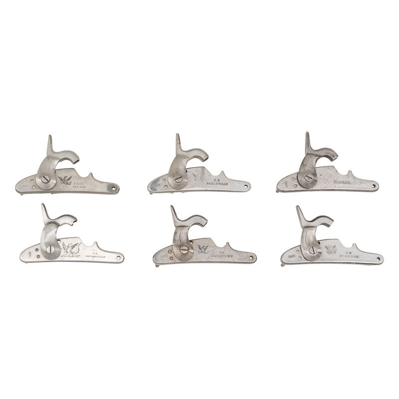 Six US Model 1861 Contract Rifle Musket Locks, Including: Union Arms Co, Eagleville & Manton Markings