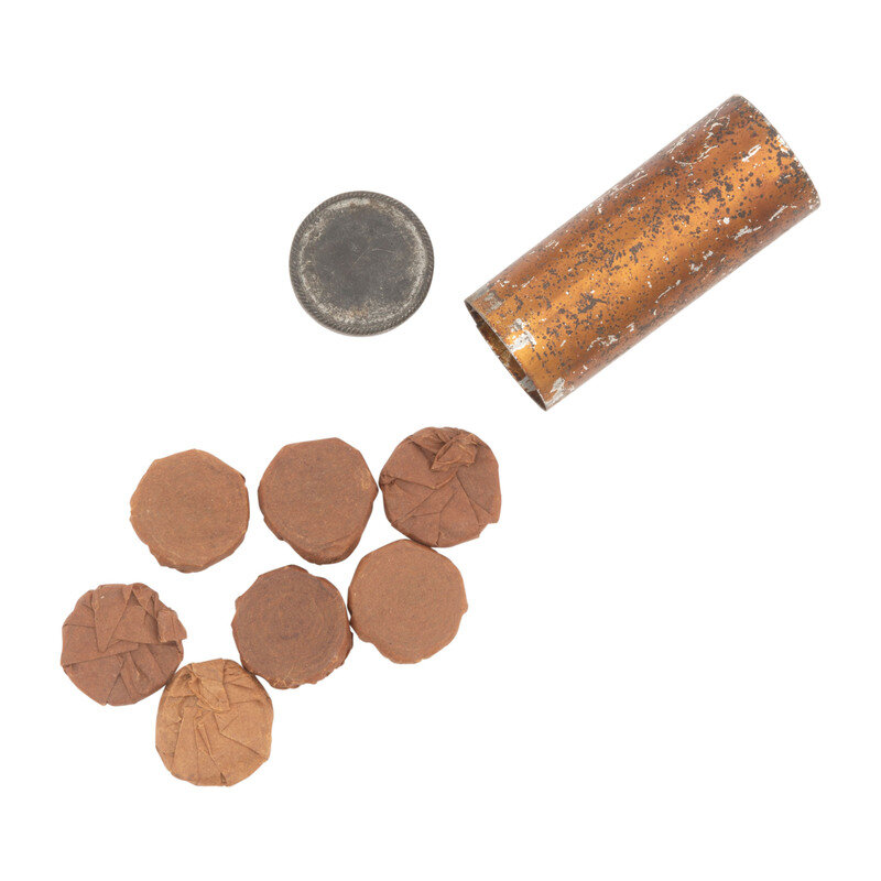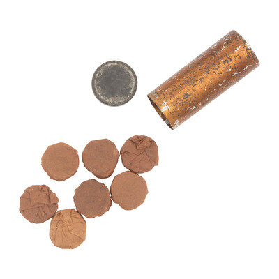 (1) Plastic tube with nine partial and complete rolls of Maynard tape primers.