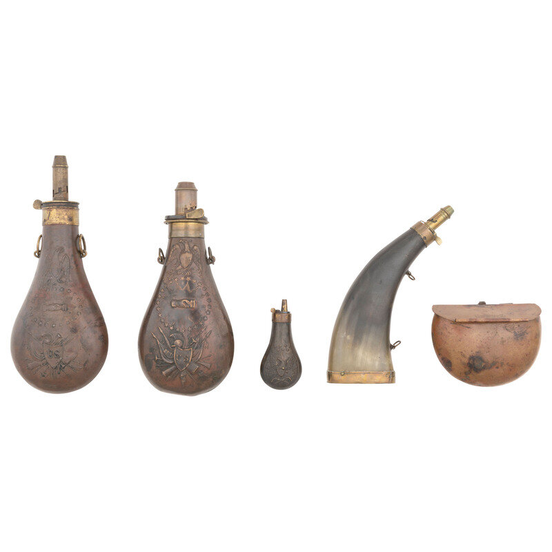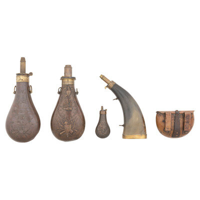 Group of Powder Flasks & a Kittredge Cartridge Box