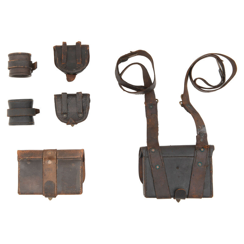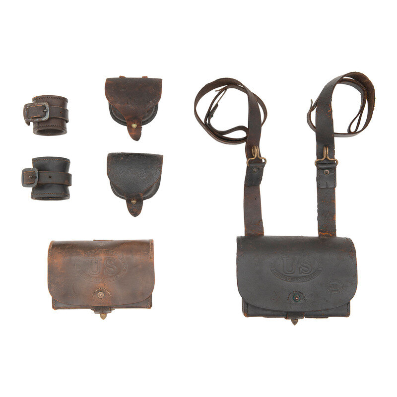 Group of Civil War Era Accoutrements: 2 Mann's Patent Cartridge Boxes, 2 Cap Pouches and 2 Carbine Sockets