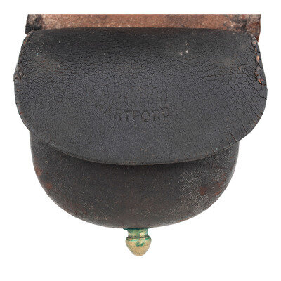 1) Mann's Pattern Cartridge Box without suspension system, including the Mann patent tin magazine on the interior. Well marked on the front flap with Mann patent information, US and Gaylord maker's mark. Measures nominally 6.25"x4.375"x1.5", not including the outer flap.