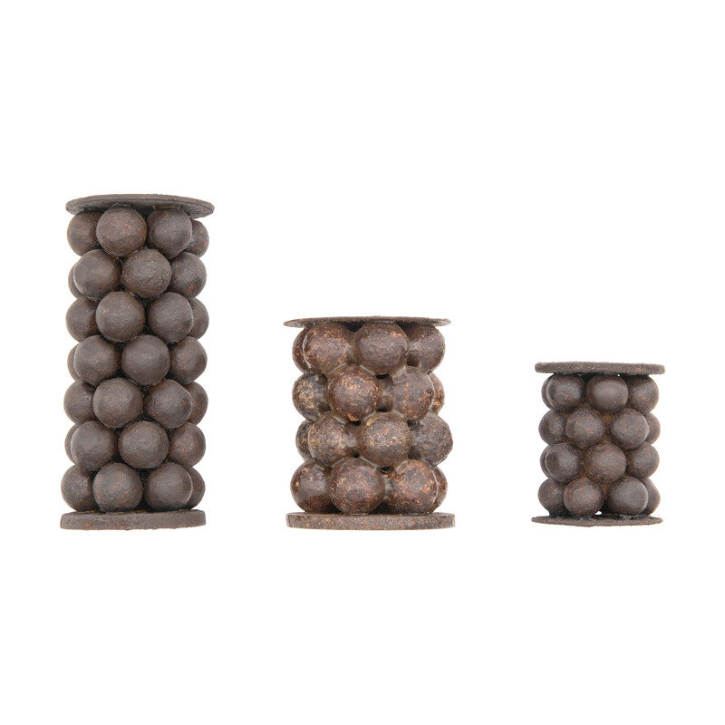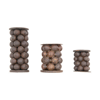 3) Dug Canister Round, possibly for the 6pound Wiard gun. Nominally 3.2" tall and 2.5" in diameter. Reassembled plates.