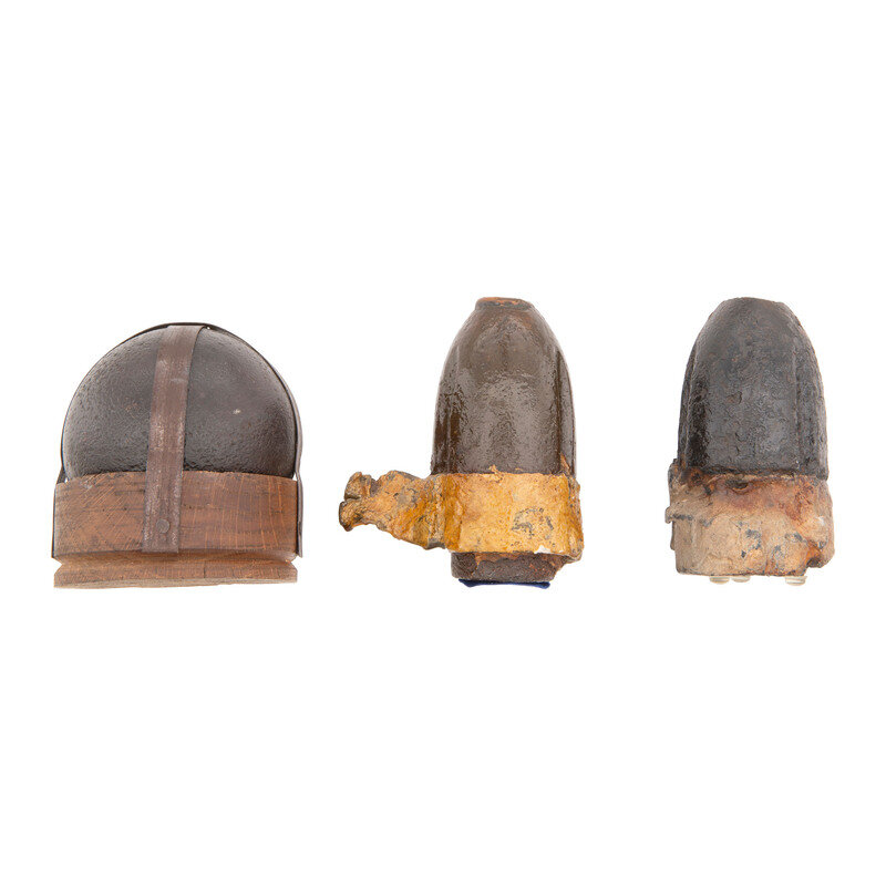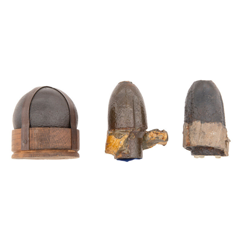 Three Civil War Artillery Projectiles: 12 Pound Solid Shot and Two Hotchkiss Shells